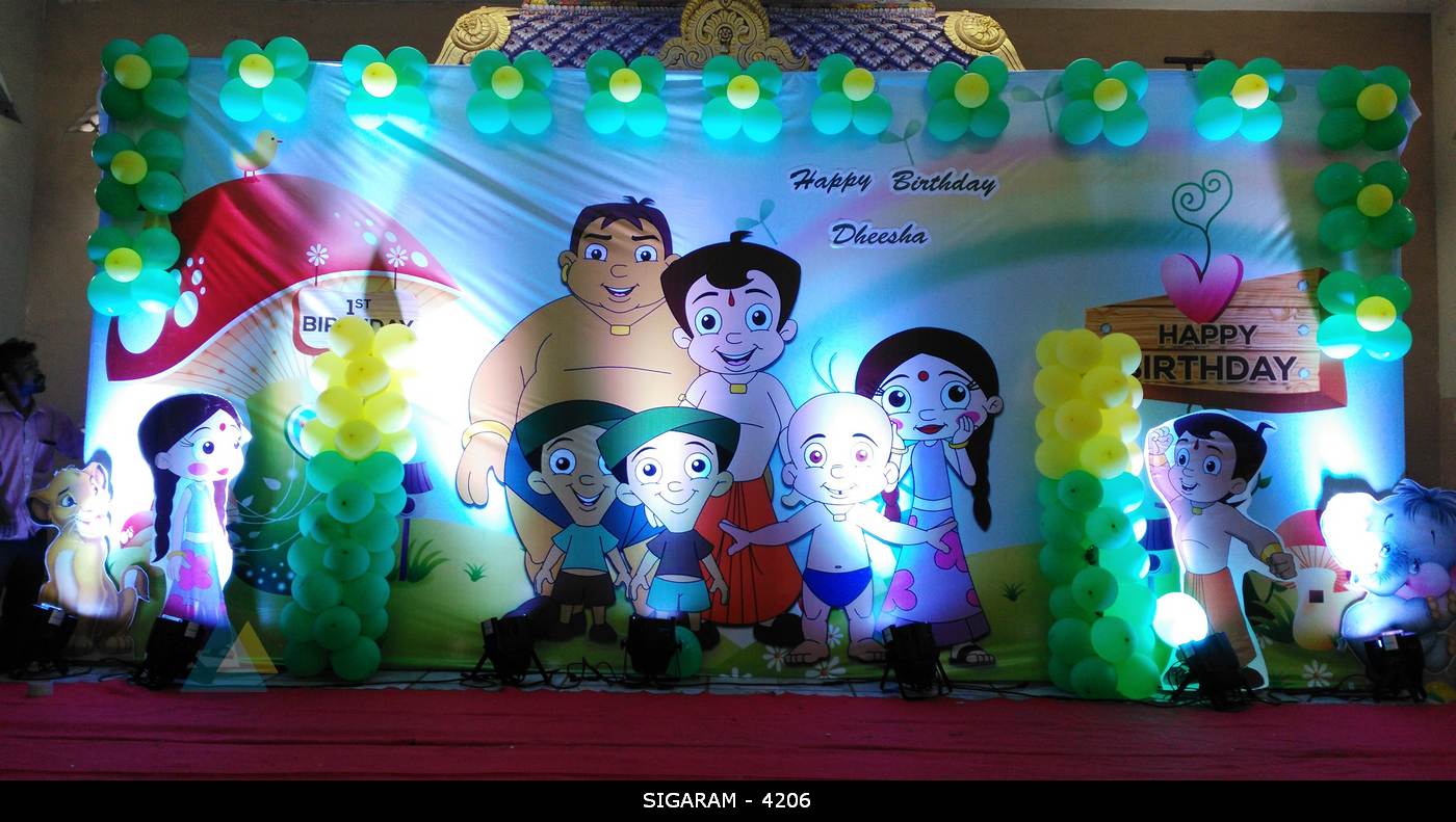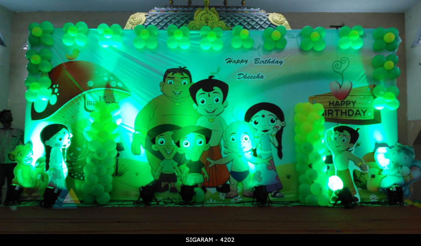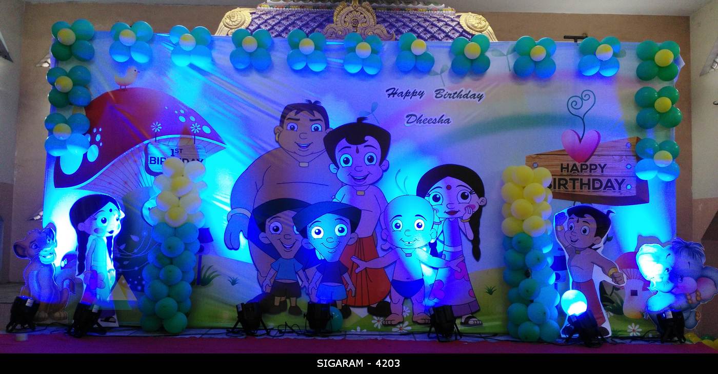 May132016BirthdayLatest DecorationsChota Bheem Themed Birthday Decoration done on 13th May, 2016 at Kottakuppam, Pondicherry Birthday : 13th May, 2016 Venue : Kottakuppam, Pondicherry Categories: Birthday, Latest DecorationsBy sigaramMay 13, 2016Leave a commentTags: Balloon DecorationBirthday DecorationChota BheemPondicherry Share this post Share on FacebookShare on Facebook Share on XShare on X Pin itShare on Pinterest Share on WhatsAppShare on WhatsApp Author: sigaram Post navigationPreviousPrevious post:Wedding Reception Decoration done at Mass hotel, PondicherryNextNext post:Wedding Reception Decoration at Jipmer Community Hall, PondicherryRelated postsCocomelon theme birthday party decoration at AR Phalazzo Resort and BanquetsDecember 14, 2024Jungle theme birthday decoration at Green palace hotel, PuducherryDecember 5, 2024Birthday Stage Decoration at Shenbaga Hotel and Convention Center, PuducherryNovember 30, 2024Moon Themed Birthday party decoration at Yagna Residency, PondicherryFebruary 7, 2021Reception stage decoration at AVRK Mahal, Ariyankuppam, PuducherryFebruary 3, 2021Reception, Marriage decoration at Shri Vaaniyar Thirumana Nialayam, Villianur, PuducherryFebruary 2, 2021