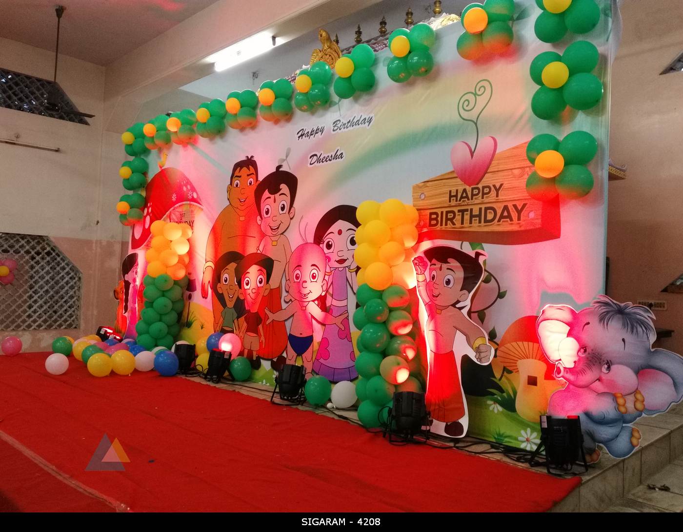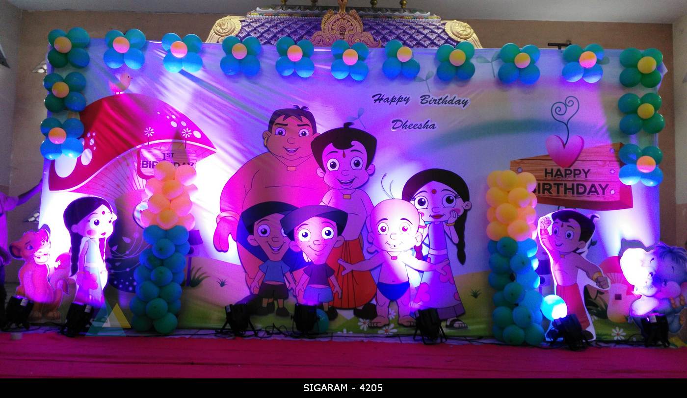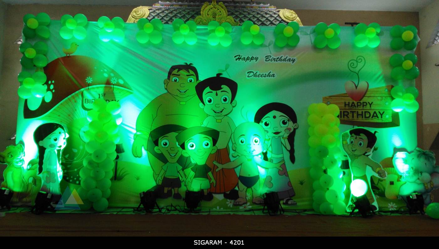 May132016BirthdayLatest DecorationsChota Bheem Themed Birthday Decoration done on 13th May, 2016 at Kottakuppam, Pondicherry Birthday : 13th May, 2016 Venue : Kottakuppam, Pondicherry Categories: Birthday, Latest DecorationsBy sigaramMay 13, 2016Leave a commentTags: Balloon DecorationBirthday DecorationChota BheemPondicherry Share this post Share on FacebookShare on Facebook Share on XShare on X Pin itShare on Pinterest Share on WhatsAppShare on WhatsApp Author: sigaram Post navigationPreviousPrevious post:Wedding Reception Decoration done at Mass hotel, PondicherryNextNext post:Wedding Reception Decoration at Jipmer Community Hall, PondicherryRelated postsCocomelon theme birthday party decoration at AR Phalazzo Resort and BanquetsDecember 14, 2024Jungle theme birthday decoration at Green palace hotel, PuducherryDecember 5, 2024Birthday Stage Decoration at Shenbaga Hotel and Convention Center, PuducherryNovember 30, 2024Moon Themed Birthday party decoration at Yagna Residency, PondicherryFebruary 7, 2021Reception stage decoration at AVRK Mahal, Ariyankuppam, PuducherryFebruary 3, 2021Reception, Marriage decoration at Shri Vaaniyar Thirumana Nialayam, Villianur, PuducherryFebruary 2, 2021