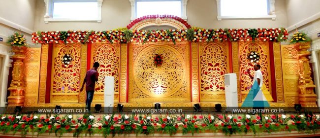 Reception Stage decoration done on 06th September 2017 at Shri Thangamayil Thirumana Mandapam, Mailam Reception Decoration : 6th September 2017 Venue: Shri Thangamayil Thirumana Mandapam, Mailam