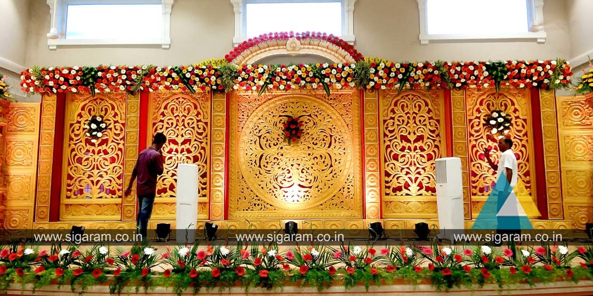 Reception Stage decoration done on 06th September 2017 at Shri Thangamayil Thirumana Mandapam, Mailam