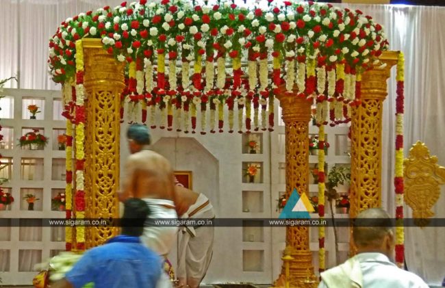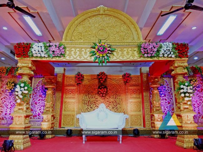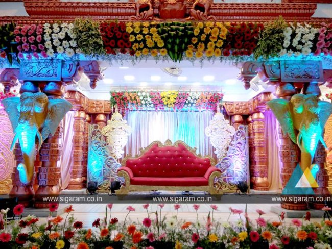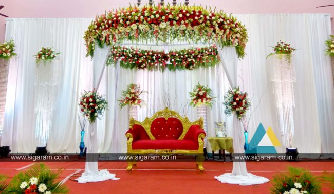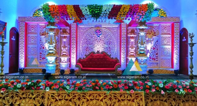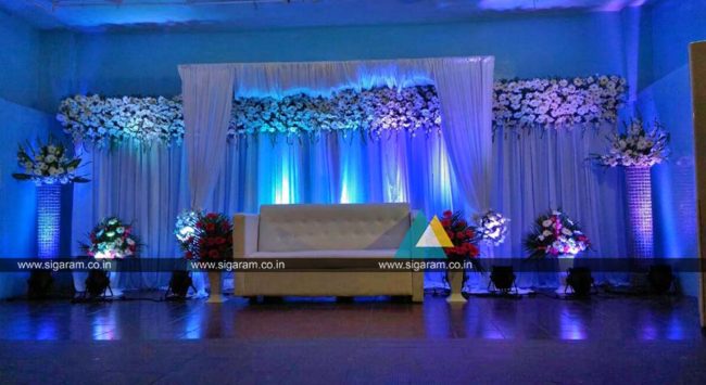 Reception and wedding stage decoration at Thavamani Mandapam, Kalapet, Puducherry